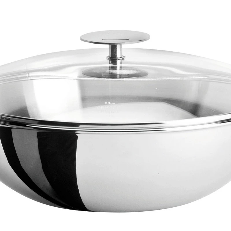 Detachable handles sold separately. The Casteline 3 Qt. Wok with Domed Glass Lid features 3-Ply side wall construction for precise heat control. The size is perfect for stir frying, and braising. It is also great for making Arroz con Pollo and Paella . It is made in France and comes with a limited lifetime warranty. It is compatable with all cooking surfaces including induction. With optional detachable side handles you can bring it to the table after cooking.