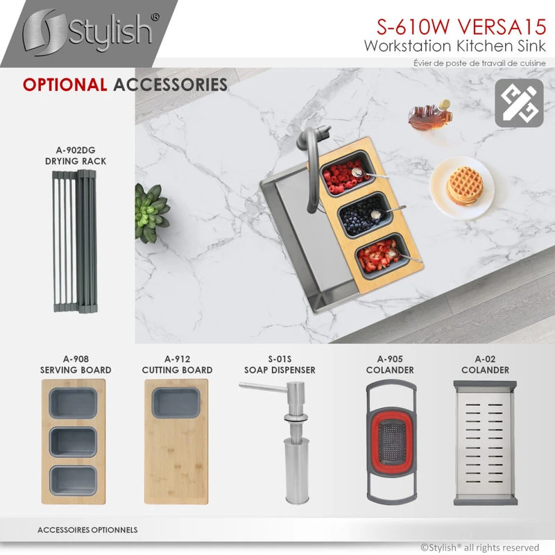 Complement the style and function of your sink workstation with our accessories, designed to perfectly fit your single undermount kitchen sink while offering advanced convenience.