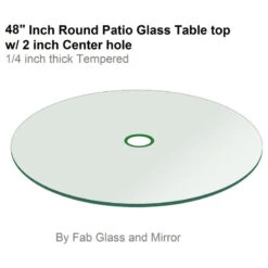 Patio Glass Table Top: 48” Round 1/4 Thick Flat Tempered With 2” Hole