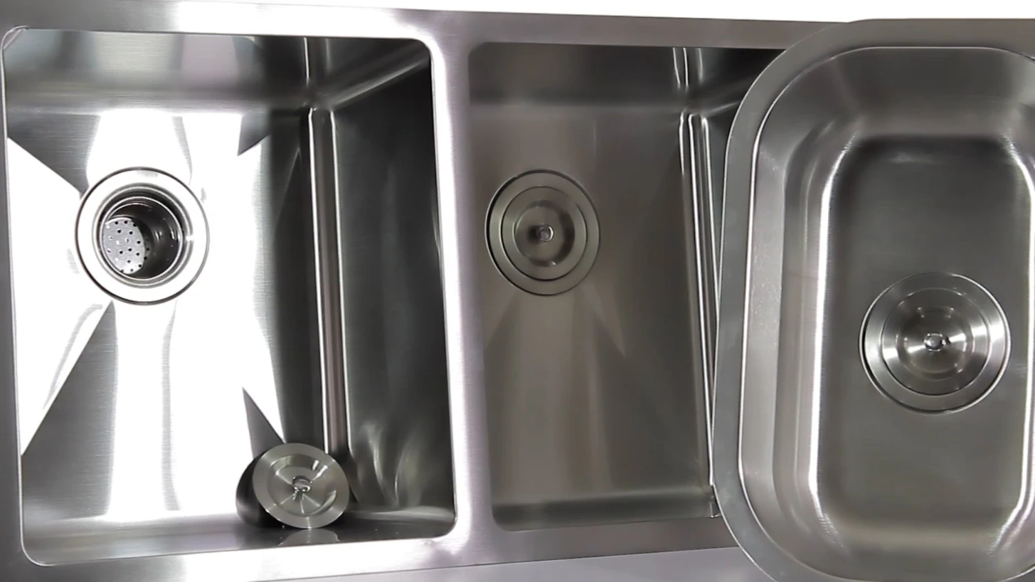 - Wet bar styling – a narrow, rectangular bowl with sweeping corners and a brushed-satin finish