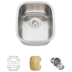 Durable and functional, this beautiful, undermount, stainless steel sink is narrow but still features a front-to back length comparable to full-size models. It provides adequate washing area for glassware and utensils at the bar; or it can offer plenty of space to clean vegetables and foodstuffs as a prep sink in the kitchen This model is 304-grade, cold rolled steel, at a 16-gauge thickness; 25% thicker than the industry standard 18-gauge. The surface is given a brushed-satin finish which adds to its luster and masks minor scratches which could occur over time. Dense, sound-dampening pads and an insulation coating are applied to its underside. With an overall measurement of 15″ x 18 1/2″ x 7 1/4″, it will require a minimum-width cabinet of 18″. It is cUPC certified. This ensemble includes one of our custom-fitted, natural cutting boards made from the dense hardwood of the rubberwood tree. Naturally resistant to moisture and mold; it features a groove along its perimeter which channels away any runoff. Our basket strainer offers a deep, perforated, metal basket, complete with handle. It sits inside the main body and holds considerably more waste than standard models.