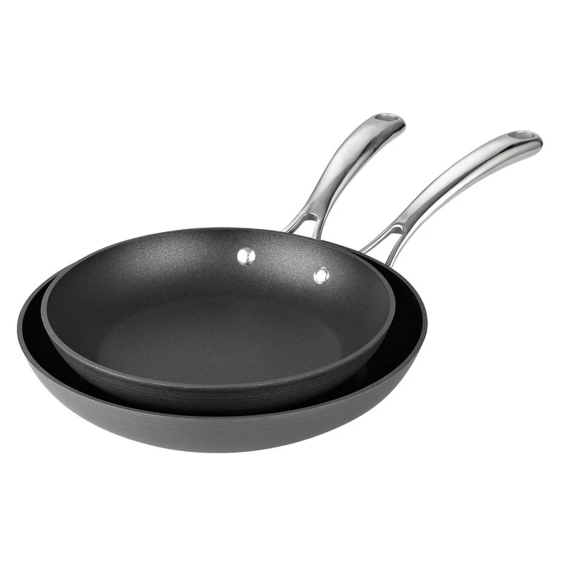 Cooks Standard Hard Anodize Nonstick Cookware Fry Pan Skillet Sauté, 9.5-inch and 11-inch set, 2 PC Set, Hard Anodized surface is harder than stainless steel, it’s dense and will NOT chip, Premium Grade Nonstick coating deliver exceptional performance, durable and very easy to clean, Heavy gauge Aluminum core distribute heat evenly without any “Hot spot”.