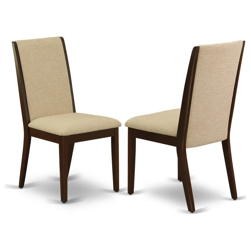 East West Furniture MZLA3-MAH-04 3-Piece Rectangular Kitchen Table Set Included a Drop Leaves Dining Room Table & 2 Dining Chairs, Light Tan Linen Fabric Modern Dining Chairs Seat with Rubber Wood Legs, Mahogany FinishEast West Furniture 3-Pc dining kitchen table set including 2 fabric kitchen chairs and a rectangular luxurious drop leaves kitchen table will increase the elegance of your dining room or kitchen areas. This dining room table set is manufactured from strong Asian wood, known as Rubber Wood, which is rugged enough to withstand years of use. It also has an ergonomic design, which is very comfortable. Single rectangular drop leaves kitchen table with 2 padded parson chair is in Mahogany finish. This wood dining table set would add elegance and attractiveness to your kitchen or dining area. This dinner table is flexible and cozy. This rectangular dining table features a compact design suitable for small areas. The parsons dining room chairs seat is made from soft Linen Fabric cushion, with Solid Rubber wood legs and stylish soft Linen Fabric backrest with Asian wood body, soft cushion, and stylish backrest design to make you more cozy. Our dining table set adds some modern elegance to your home. Kitchen chairs and a drop leaves dinner table offer plenty of space for your family or friends. The simplistic and beautiful design is accentuated by a glossy Mahogany finish. You will surely enjoy this wonderful kitchen dining table set. It’s easy to construct the parsons chairs and rectangular drop leaves kitchen table with a simple tool. No additional tools are required. Easy-to-follow instructions, tools, and hardware are included. With the help of a damp cloth, you will clean up your dusty easily. Buy our products in full confidence, because your satisfaction is our #1 priority. Feel free to contact us, we are always here for you.FEATURES:Linen Fabric parson chair seat Color: Light TanDining room chairs legs Color: MahoganyPadded parson chairs Sizes: Length 24; Width 20; Height 39Dining room table Color: MahoganyBreakfast table Sizes: Length 36/54; Width 40; Height 30Included: A beautiful rectangular drop leaves dining table and 2 great upholstered dining chairs.