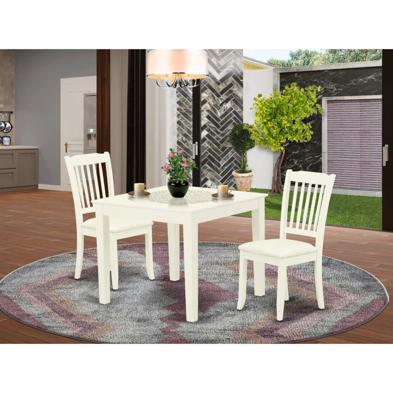 - OXDA3-LWH-C 3Pc Dinette Set Includes a Square Kitchen Table and Two Vertical Slatted Microfiber Seat Dining Chairs, Linen White Finish