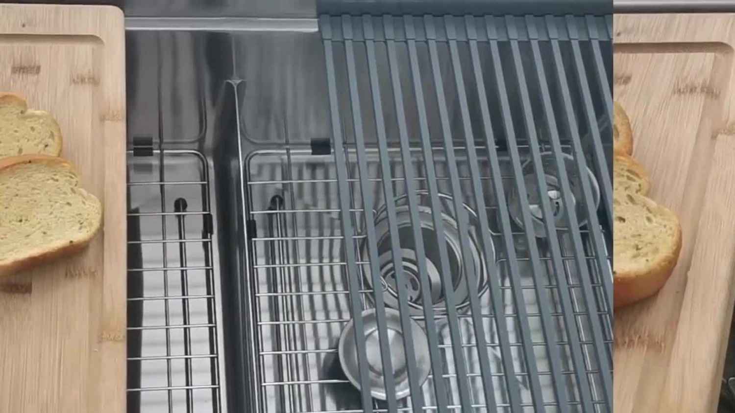 This kitchen sink workstation combines the best of both worlds: a stainless steel double bowl kitchen sink with a slim and low divider for convenient space usage, and a functional ledge sink with built-in accessories (colander, roll-up drying rack and cutting board) that slide on the integrated tracks of the sink to streamline meal prep and clean up without losing space on your countertop. This 16G stainless still workstation sink includes a stainless-steel COLANDER that you can use for straining, draining, sieving, and filtering tasks like straining fruits, vegetables and draining cooked pasta. This kitchen sink with CUTTING BOARD made of high-quality anti-microbial and BPA free bamboo will make it easy to chop any food, cut fruits and veggies over the sink. This ledge kitchen sink also contains a DRYING RACK convenient for drying or rinsing vegetables, fruits, dishware, knife, glasses and cups.