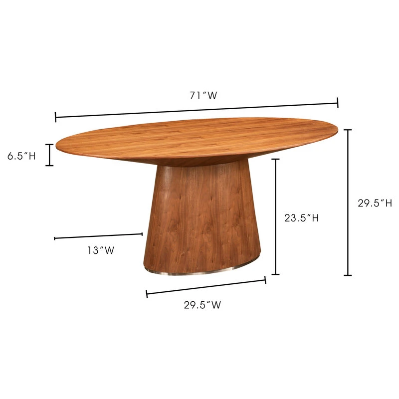71″ Contemporary Semi Gloss Brown Oval Dining Table for 6 People Product Description Of Otago Oval Dining Table Walnut, 71 Inch Oval Dining Table Walnut Brown Contemporary By Moe’S Home Collection Furniture. Nestled On Top Of A Walnut Pedestal, The Otago Table Features Clean Lines And A Contemporary Modern Style That Will Brighten Up Your Dining Area With Its Warm Hues And Circular Design. A Polished Walnut Veneer, And Brushed Stainless Steel Detailing Complete This Tables Seamless Look. 71″ Contemporary Semi Gloss Brown Oval Dining Table for 6 People Features: