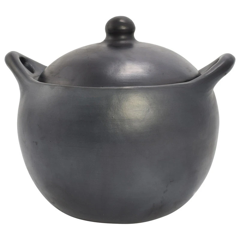 The large rounded soup pot is perfect for slow cooking soups, stews, and casseroles. Length 12.0in (handles included) x Width 11.0in (from outside), Height 10.5in (with the top of the lid handle), Diameter 8.75in and Capacity 6qt (filled comfortably without overflowing). Better suited for gas ranges or open fire, it heats very evenly and retains heat for a long period. Completely natural and safe, contains no toxins or lead and the porous nature of the clay allows the slow evaporation of steam and produce food that is healthier, tastier, and moist using less fat and liquids. Will last many years with proper use and care (each piece comes with a product information sheet outlining the Uses and Care for the product). Perfect for slow cooking soups, stews, and casseroles, and serve in the table for a great presentation. Black Clay, La Chamba Cookware, is well-known and used throughout Colombia in restaurants and homes for preparing and serving traditional dishes. Its origins can be traced back at least 700 years to vases and pitchers found in pre-Columbian archaeological sites. It is still made in the traditional manner, by families in a small village on the banks of the Magdalena River in Central Colombia. Each piece is hand-made using local area clays, then hand burnished with a stone. The pieces are then fired in the village, giving them the distinctive black color and elegant look.