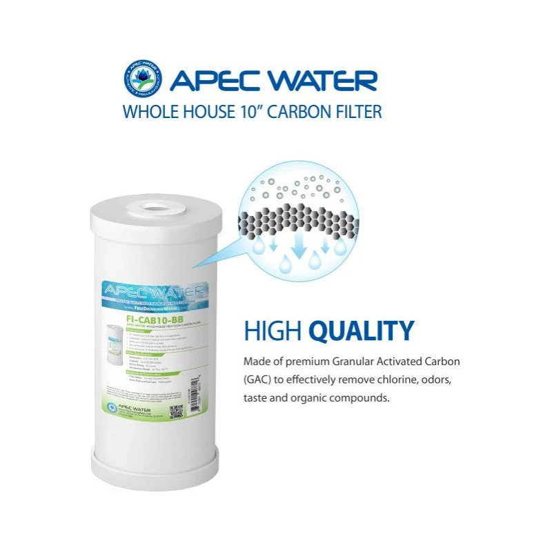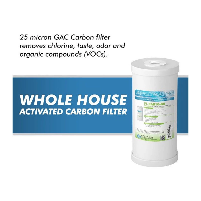 Our FI-CAB10-BB filters are radial flow carbon cartridges uniquely designed for the whole house and other high flow applications. Both carbon filters will effectively remove chlorine, taste, odor and organic compounds to deliver clean, filtered water to every outlet in your home.
