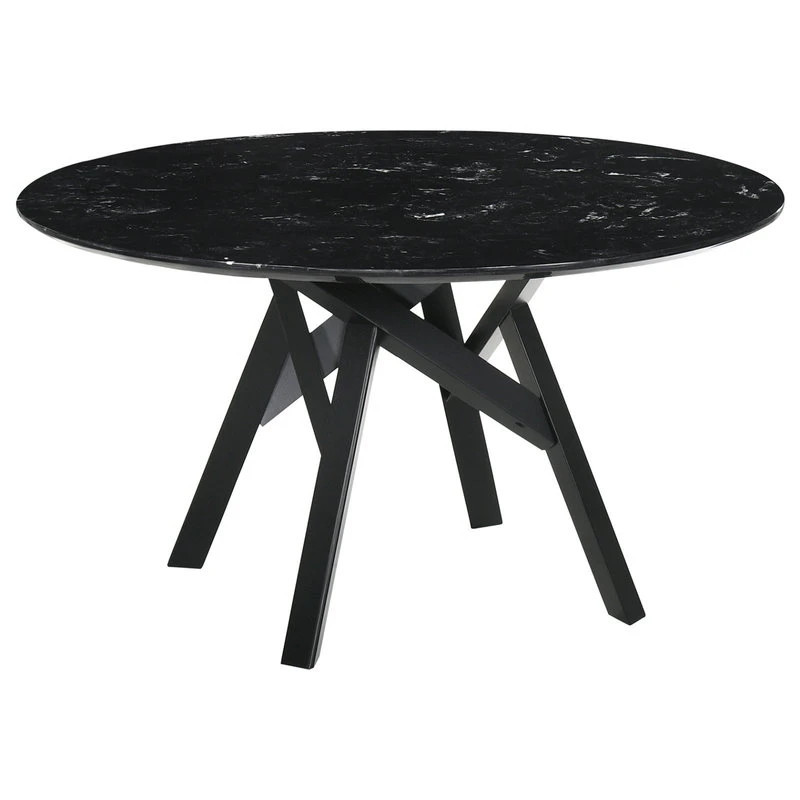 The Armen Living Venus 5 piece dining set are both simple but elegant that will complete any contemporary style home. The table has sleek muted black wood finish with 4 pointed leg base, compliment with a beautiful marble top. The Venus table comes with 4 Polly black chairs that feature upholstry seats and back for optimum comfort. The beauty of this pairing lies in the subtle interplay of soft and neutral colors with a modern design structure. This piece is practical, yet highly appealing, making it the ideal combination for any contemporary dining room.Feature:
