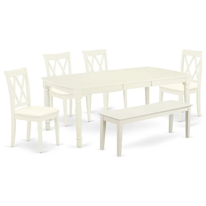 Quality is made attainable with this exclusive Atlin Designs dining set includes a rectangular dinette table, four dining chairs and a bench. The dining table can fit maximum of 8 people in the dining area. The table’s 4 straight leg support brings a simple and breezy style to any space, making it incredibly easy to incorporate into any dining room. The Kitchen table includes a built-in 18 inch self-storage expansion leaf which can be stored right beneath table the top. The wooden table is created from prime quality rubber wood known as Asian Hardwood. No heat treated pressured wood like MDF, particle board or veneer top fabricated. Slender Double X back kitchen chairs present fashionable and cozy seating, with Linen seats finished in luxurious linen white which let you enjoy a nice and trendy dining experience. The frame of the chairs are engineered to offer a great amount of comfort to your spine and thus reduce the chances of back pain. The luxurious linen white finish bench matches well with the table and chairs. This budget friendly, durable and comfortable dining set can be good choice if you are looking for a great dining time experience with your family or friends.