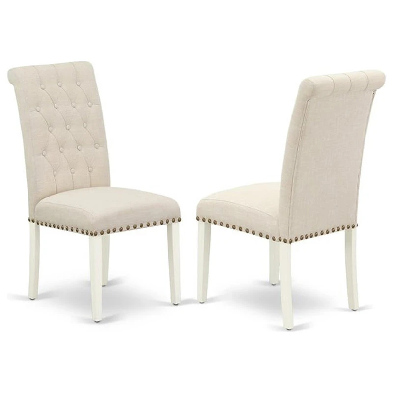 - The small dinette set has a linen white solid wood dining table and frame and a stunning light beige linen fabric button-tufted kitchen dining chairs seat