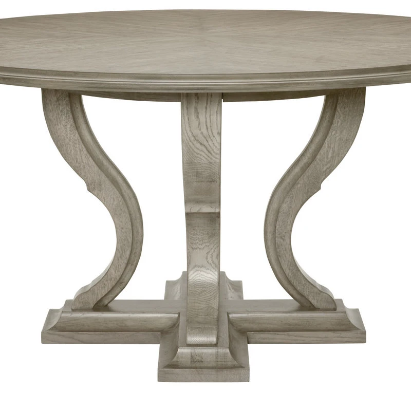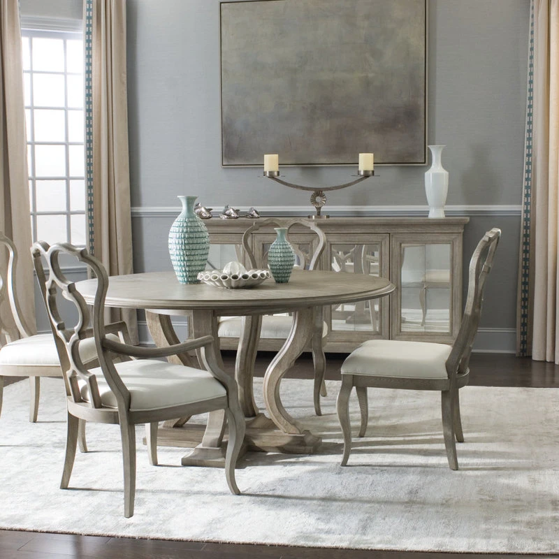 The subtle shapes of the Marquesa Dining Table by Bernhardt adds a traditional feel to your interior. The soft gray cashmere finish of the wood makes this table however more neo-traditional giving it a modern flair. It offers a casual comfort with its earthy palette and adds elegance to your home decor.