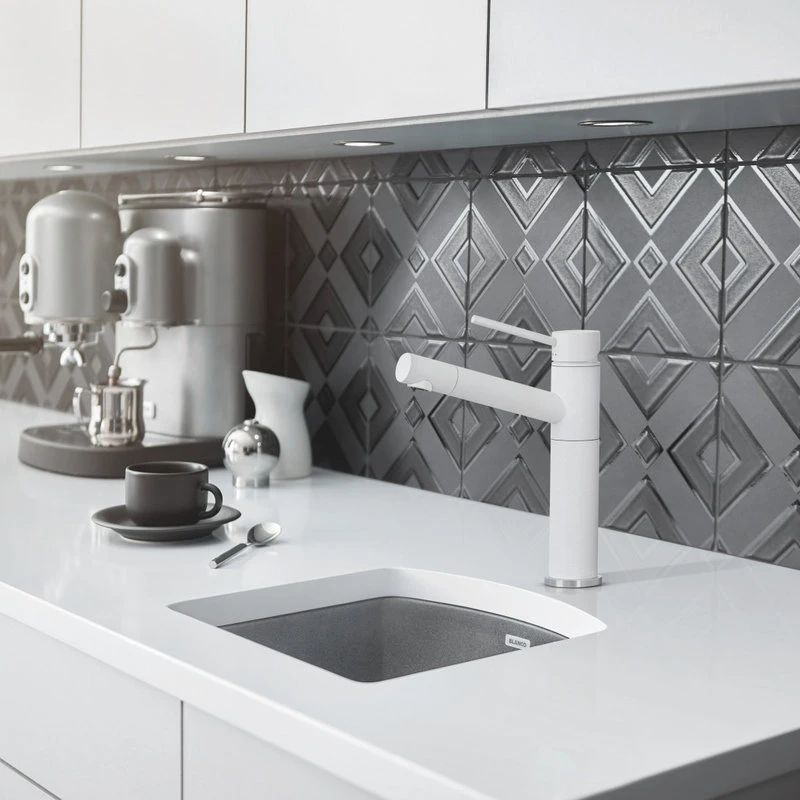 Both an expression of your individual style, and a testament to BLANCO’s unsurpassed quality and craftsmanship – a variety of shape, sizes and features combine to bring you the DIAMOND collection. Every detail has been considered, from the large bowl capacity to the easy-to-clean, durable SILGRANIT surface. The BLANCO DIAMOND DUAL DECK BAR SINK is designed to be used as a secondary sink. Made from the rock hard, SILGRANIT patented surface, the DIAMOND kitchen sink features a smooth surface that is resistant to chips, scratches and heats up to 536F. Even a fork or the bottom of a hot pan can’t damage BLANCO SILGRANIT sinks. The colorful, non-porous surface also makes the bowl resistant from all stains, household acids and alkali solutions as well as easy-to-clean. For three generations, BLANCO has quietly and passionately elevated the standards for luxury sinks, faucets, and decorative accessories. A family-owned company, BLANCO was founded over 85 years ago in Germany, and recently celebrated a milestone of 25 years in the United States where we are recognized as a leader in quality, innovation, and unsurpassed service. Create the ideal kitchen experience with the versatility of the DIAMOND collection.