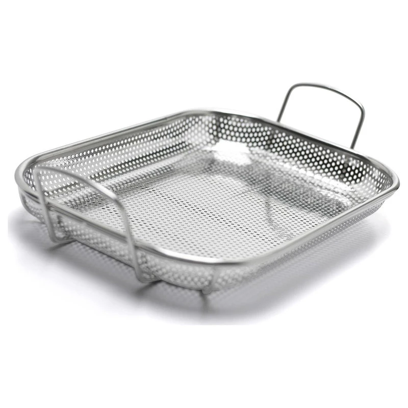 The Stainless Steel Roaster Basket offers a premium accessory for use with your grill. This rectangular 14- by 10.25-inch roasting topper features micro perforations, a smoother roasting surface, and all stainless construction for superior durability. Tiny holes allow fewer small pieces to fall through and into the grill for a better grilling experience. With its simple design, this accessory is perfect to cook on and easy to clean.