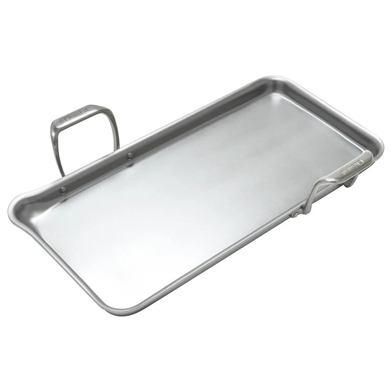 Make a batch of pancakes for breakfast with this tri-ply griddle from Chantal’s Induction 21 collection. Made from heavy gauge steel, it has convenient offset handles and an easy-to-use pouring spout. This pan provides even heat distribution and is suitable for all cooktops, including induction. The off-set handles allow for easy handling and help to maximize space. The size and shape of this griddle pan are designed to fit most sync burner cooktops. This pan is also oven and dishwasher safe for added convenience.