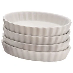 Impress lucky dinner guests and their palates, with incredible desserts and more created with the helpful BonJour Chefs Tools 4-Piece Oval Crme Brle Ramekin Set.The set includes four porcelain oval ramekins with classic scalloped designs.