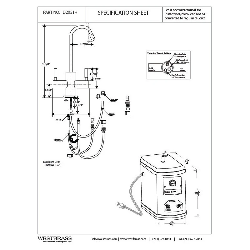 - “Contemporary Hot/Cold Water Dispenser (D2051-NL) 5-1/2″ spout projection, 9-1/4” overall height