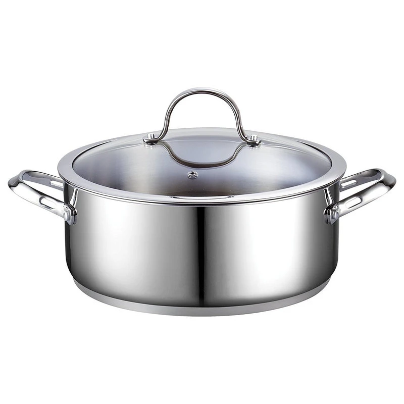 The Cooks Standard Classic 7 Quart Stainless Steel Dutch Oven Casserole Stockpot with Lid is made with stainless steel with an aluminum disc layered in the bottom. The aluminum disc provides even heat distribution and prevents hot spots. Tempered glass lid makes viewing food easy. Riveted handles offer durability. Induction compatible. Works on gas, electric, ceramic, glass, etc. Oven safe to 500F, glass lid to 350F. Dishwasher safe.