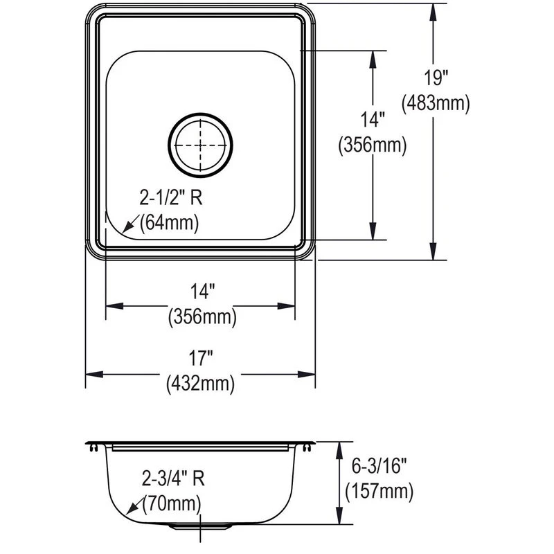 - DRAIN OPENING: Sink drain opening measures 3-1/2″.