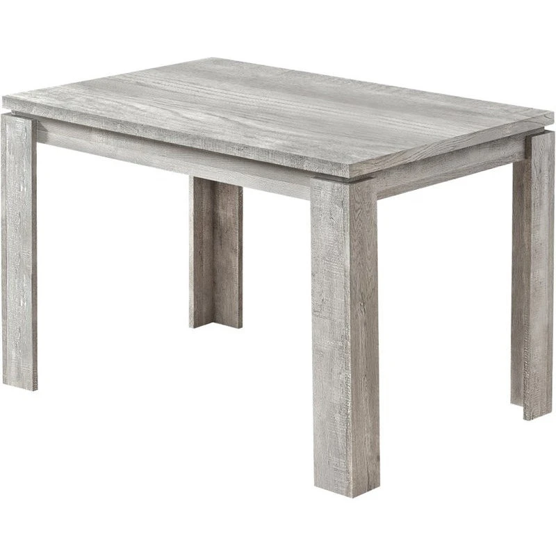 Looking for rustic? Looking for contemporary? How about both? This grey thick-paneled kitchen table features a unique reclaimed wood surface to offer you the perfect farmhouse style for your new place. The modern dining table also features open block shaped legs to keep everything nice and sturdy. When it’s time to make a statement in your home, count on this kitchen table to do the job in a casual or formal dining setting. Chairs sold separately.
