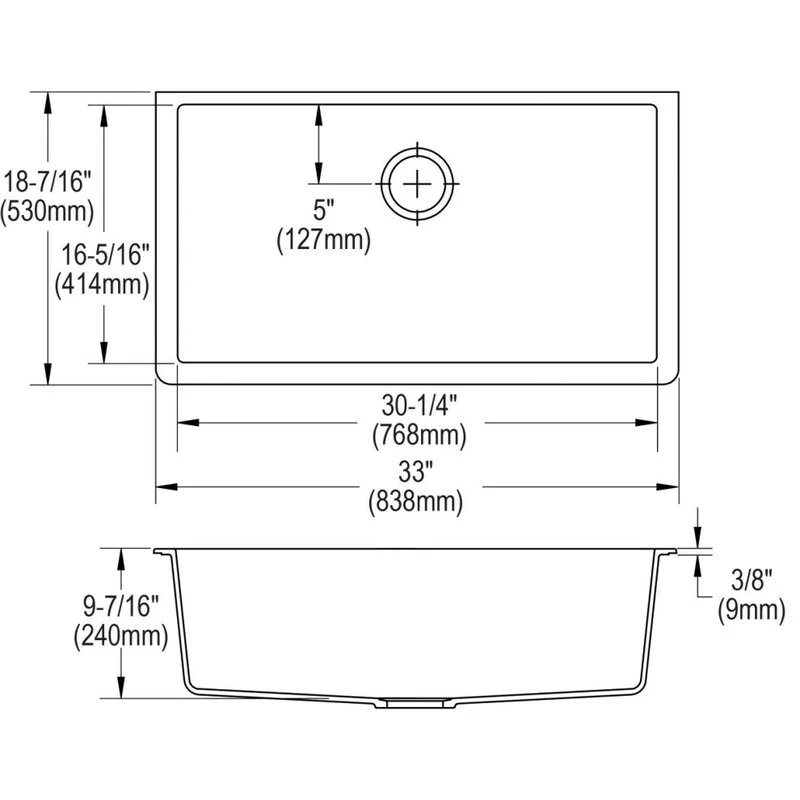 - DRAIN OPENING: Sink drain opening measures 3-1/2″.
