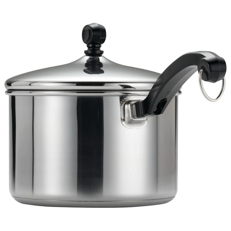 Whether preparing sauces, soups or other family favorites, the Farberware Classic Series Stainless Steel 2-Quart Covered Saucepan looks and performs great on the stovetop. Full cap base features a thick aluminum core surrounded by heavy-duty stainless steel to provide rapid, even heating; mirror-finished exterior provides a classic touch.