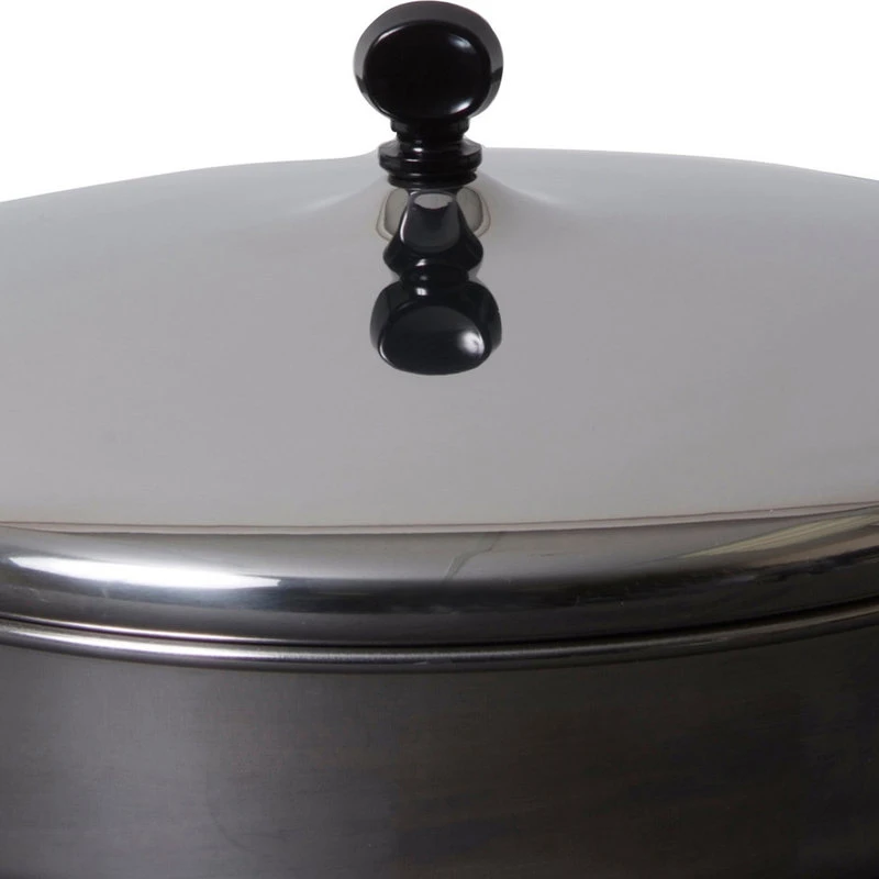 - Saucepan’s stainless steel, snug-fitting lid boasts attractive bell shape, rolled rim for added durability and eye-catching knob.