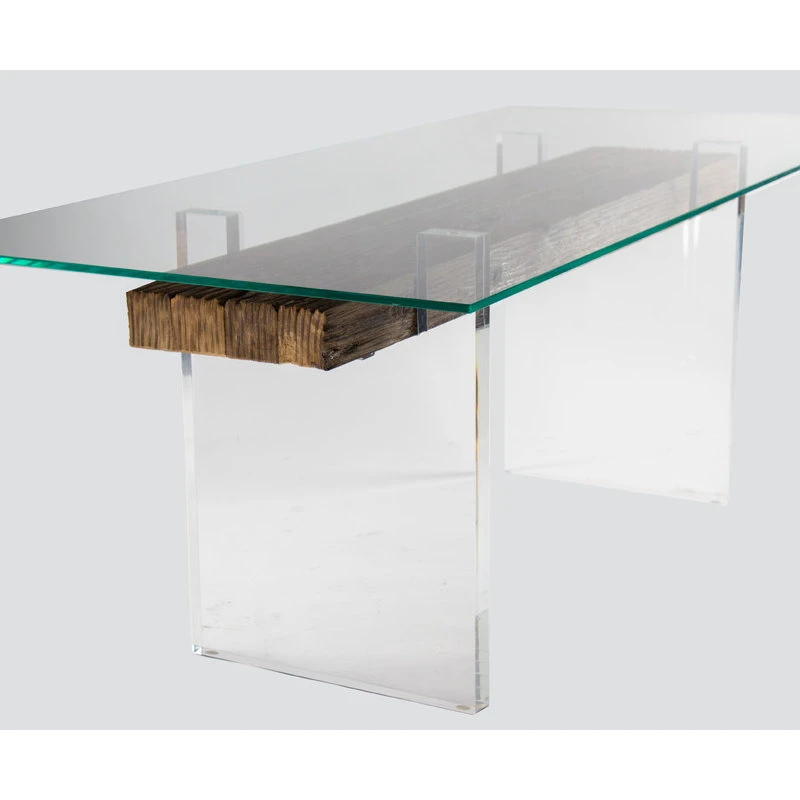 There are many layers to style, and this table has them all. The rugged wooden top is warm. The contemporary glass top is oh-so-cool. With a smooth acrylic base, this table is the clear choice for casual chic in your home.