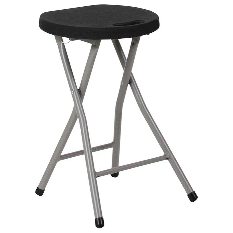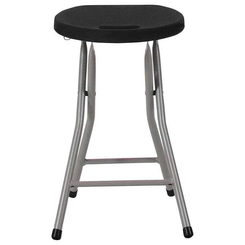 Need a convenient stool seat at a moment’s notice? This foldable stool with plastic seat is here to serve, and is perfect in the home, classroom or on the go! Foldable legs make for easy storage and setup at a moments notice. Thick acrylic plastic forms the seat, boasting a bold black color. When not needed, the stool folds up flat for storage. This backless stool is ideal for unexpected guests at home, holiday seating, or commercial use.