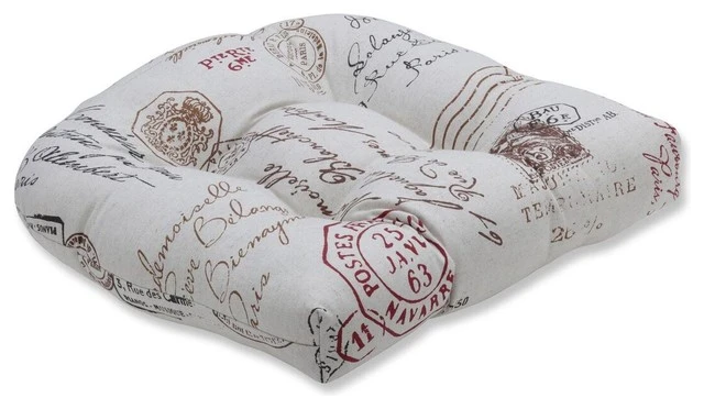Travel the globe without leaving your patio with the French Postal Wicker Seat Cushion. The French laundry pattern features black and red script across a 100% polyester, fade-resistant, tan background. Polyester fiber filling is comfortable and durable, retaining shape through daily wear while weather-resistant fabric stays strong in harsh elements and exposure to direct sunlight. Ideal for indoor or outdoor use. Measures 19 in. L X 19 in. W X 5 in. D