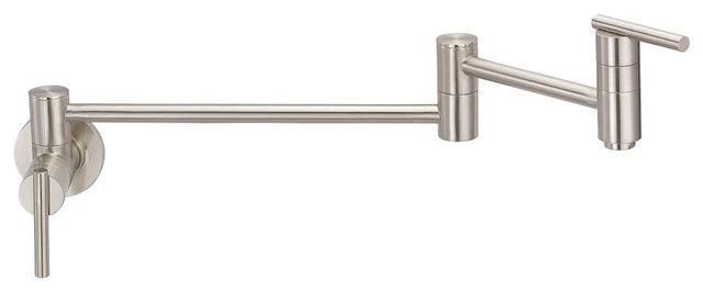 The Parma Single Handle Wall Mount Pot Filler is any cooking enthusiast’s dream. The handy 22″ tap swings out to deliver a cool steady stream of water, filling your pots right on the stove. Its two-piece articulated spout bends to provide additional coverage and folds up cleanly when the job is done, leaving you free to create culinary wonder.