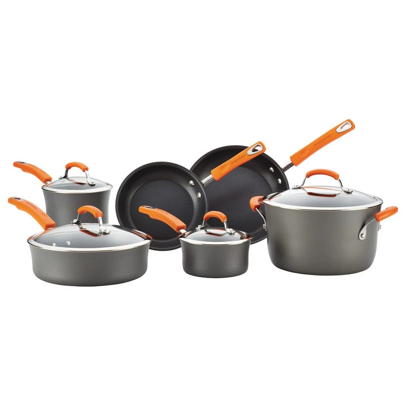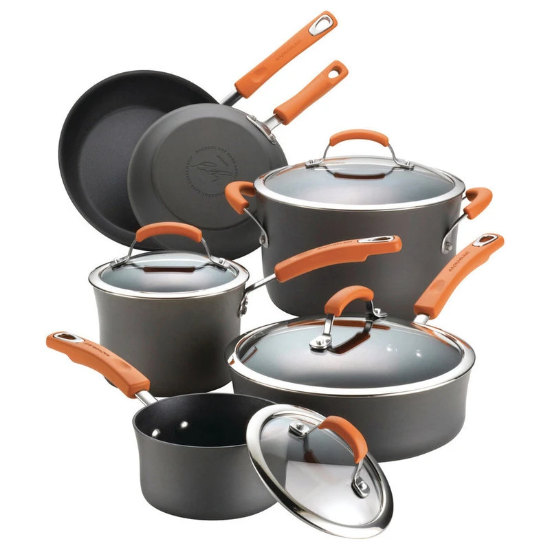 Discover why Rachael always has a smile on her face in the kitchen when using the Rachael Ray Hard-Anodized Nonstick 10-Piece Cookware Set.Long-lasting hard-anodized construction heats swiftly and evenly.