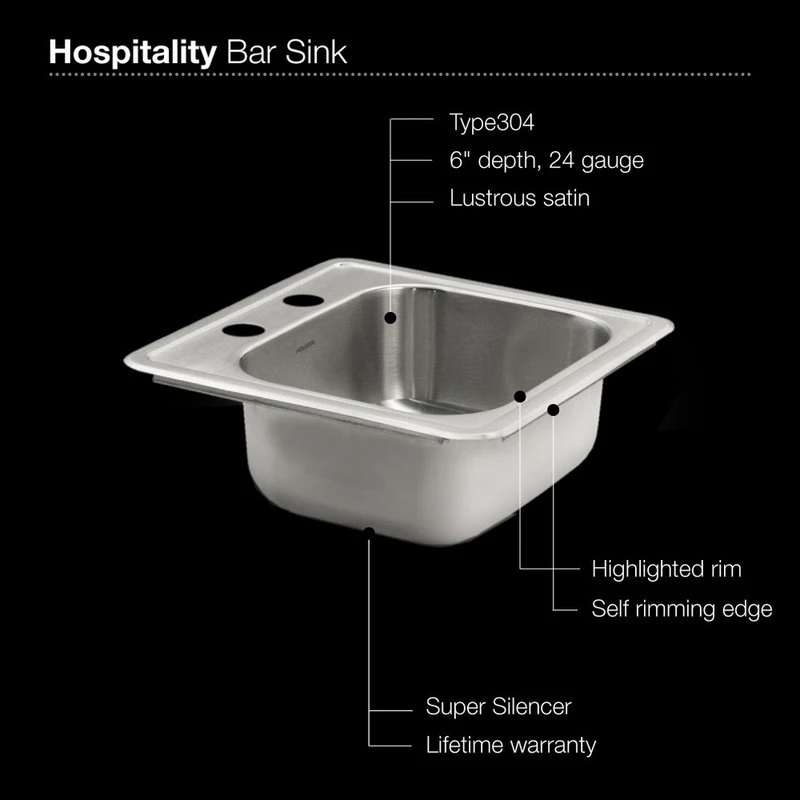 - Houzer Stainless steel kitchen Hospitality Topmount Bar Sink, 6″ Deep.
