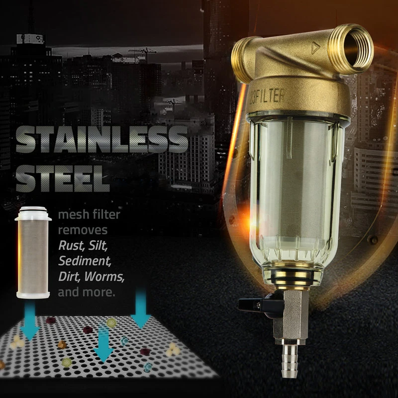 - High impact stainless steel mesh filter screen. The ideal first line of defense for finer filters, or expensive plumbing appliances.