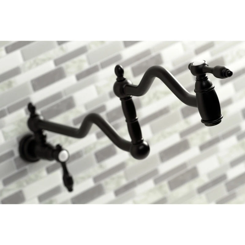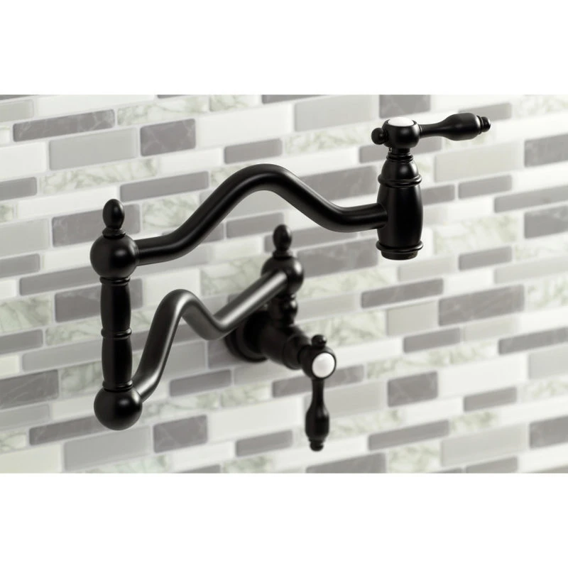 Kingston Brass KS2100AX Heritage Wall Mount Pot Filler, Matte Black