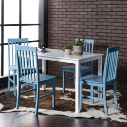 Walker Edison Grayson 5-Piece Dining Set With Colorful Chairs, Blue