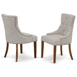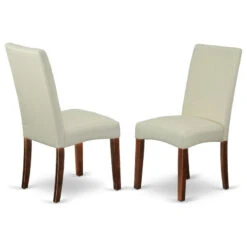 3-Piece Set, Round Table, 2 Parson Chairs, Light Beige Fabric, Black