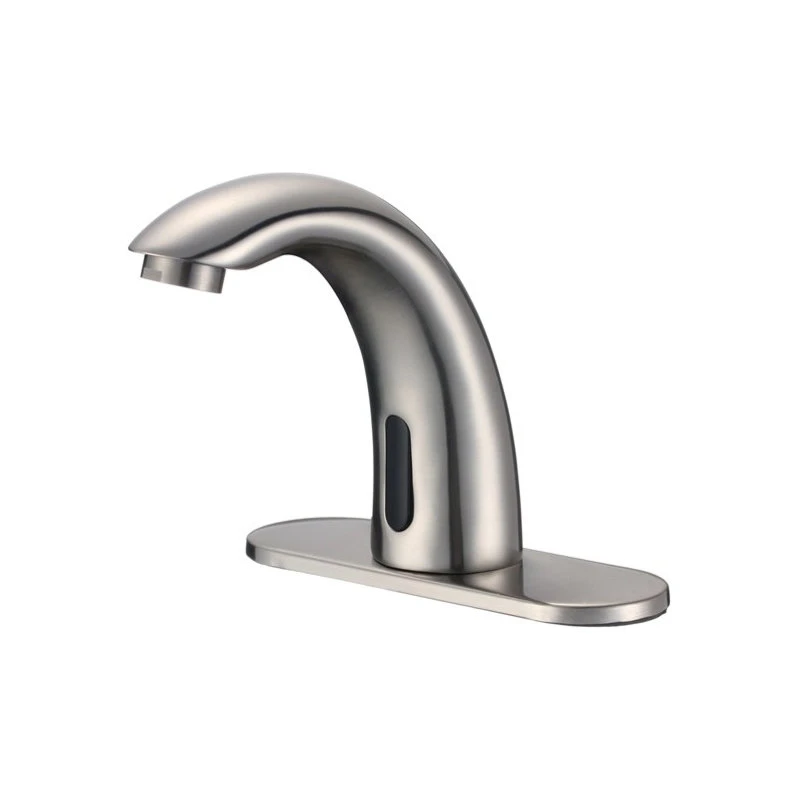 This cast brass electronic faucet is now available in brushed nickel finish. This touchless motion sensor faucet reduces the transfer of germs by preventing cross-contamination and re-contamination of germs and bacteria by not touching the faucets or handles.