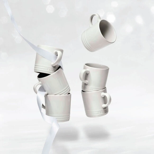 For coffee, tea, hot chocolate and even single servings of dessert, the Le Creuset London Mug has a generous 12 fluid-ounce capacity and keeps contents warm or cold. Crafted from premium stoneware in our irresistible colors, the mugs are part of our dinnerware collection and finished with a vibrant glaze which is easy to clean, dishwasher-safe, and resistant to chips, scratches and stains. Designed to stay beautiful with daily use, Le Creuset’s dinnerware brings elegant style to every table and occasion. Set includes 6 Mugs.