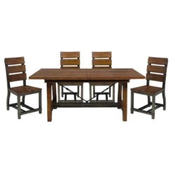 - Dining set includes dining room table and 4 side chairs