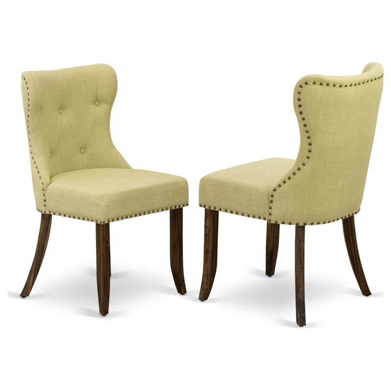 East West Furniture LMSI5-77-37 5-Piece Dining Table Set- 4 Mid Century Dining Chairs with Limelight Linen Fabric Seat and Button Tufted Chair Back – Rectangular Table Top & Wooden 4 Legs – Distressed Jacobean FinishEAST WEST FURNITURE 5-PIECE DINING TABLE SET- 4 WONDERFUL PARSON CHAIRS AND 1 KITCHEN DINING TABLE