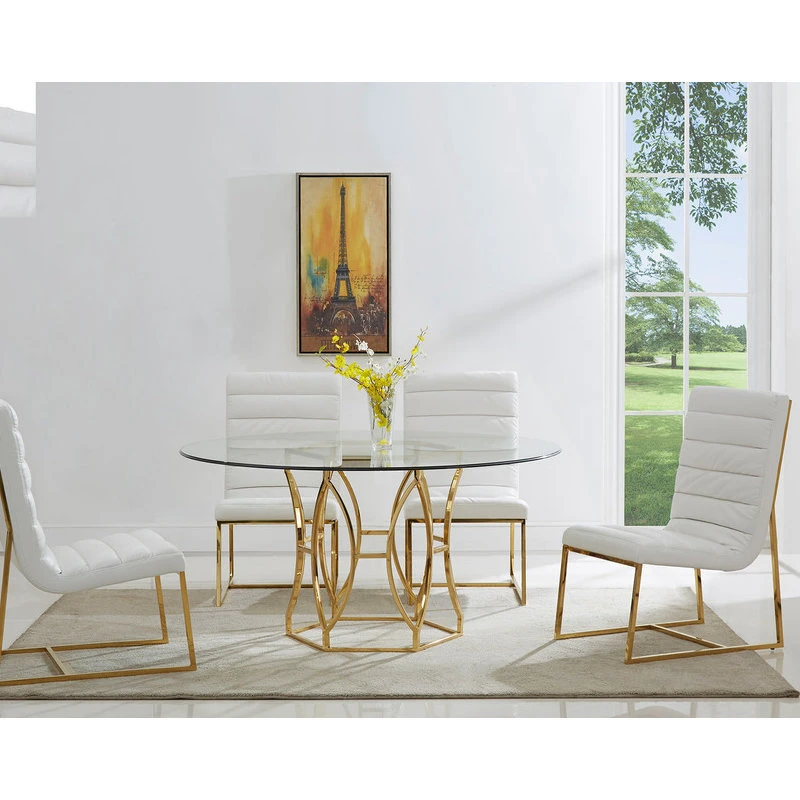 Enhance your dining room with this sleek and glamourous dining table. This round dining table is well constructed with stainless steel base, 54 inch glass top, and the glass top is 1/2″ thick. It features clean lines with a contemporary design to finish in the stunning stainless steel base.