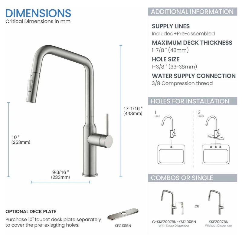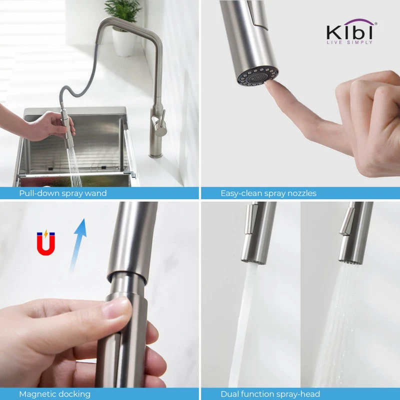 - 360° Swivel: Pull-down faucets with a high arc swivel 360 degrees for added convenience during everyday kitchen tasks.