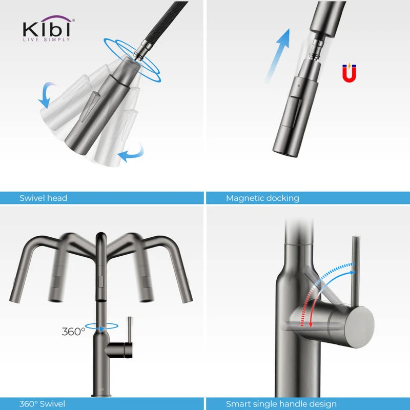 - 360° Swivel: Pull-down faucets with a high arc swivel 360 degrees for added convenience during everyday kitchen tasks.