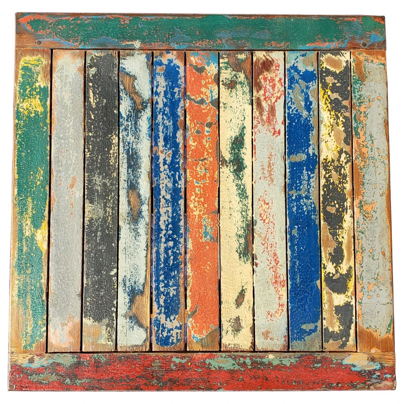 The skiffs used to make these pieces have been used for many years to catch fish that would be sold later in the day to the local markets. The wide variety of colors in the top make them easy to use in a space that is already full of color, or this side table may just be that special pop of color you have been looking for. No matter where you live, this side table will be a welcomed addition to your current decorating style.