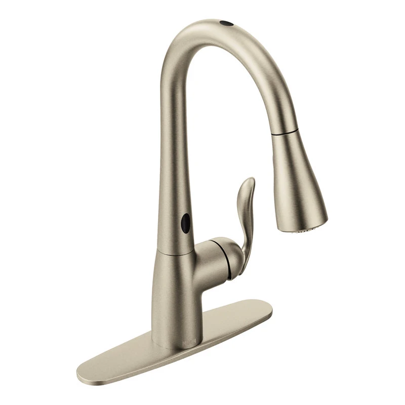 - Faucet pulldown hose offers flexible water delivery and hose retracts with ease