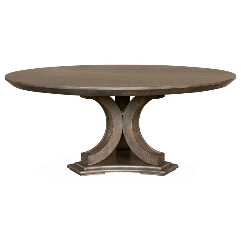 The Morrison 72″ Round Dining Table is a simple yet elegant dining table, that adds a rich touch of elegance to any home. The style of the Morrison Dining Table is highly versatile, and thus will complement an ultra-modern home, a more traditional home, and every home that falls in between. The dining table is available in a beautiful Smoke Grey finish and can seat up to 8 people. The top of the table measures approximately 2.5 inches in thickness and has a base that measures approximately 35 in. (W) x 35 in. (L) x 27.5 in. (H). The simplicity of its lines and curved corners in the base make it a unique and beautiful dining table that is guaranteed to amaze your guest. Color may vary due to the lighting/ setting of table. We will mail sample of finish upon receipt of order for approval.