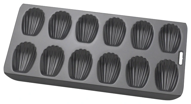 Bake delicious madelines for friends and family with this baking pan from Mrs. Anderson. Made from carbon steel, it features 12 cups for baking delicious treats. The nonstick cooking surface provides even heat distribution and easy release for perfect results each time. Use this pan to make French cakes, vanilla madelines, and more.