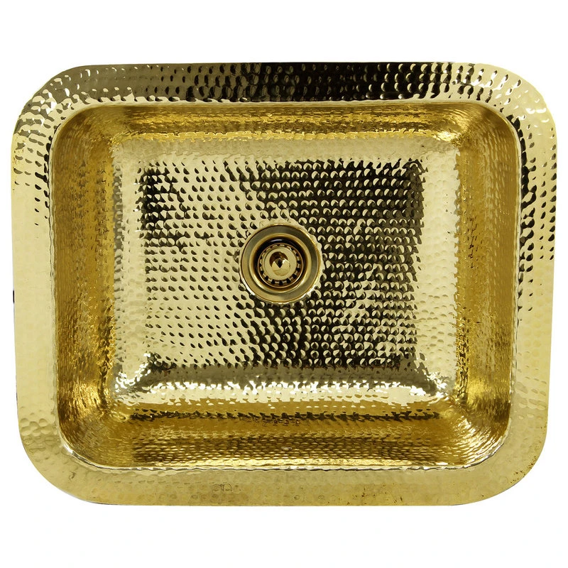 An exclusive design, this Hand Hammered brass Bar Sink is designed to be over or undermounted. Make a focal point of a room with this unique sink. This sink will naturally patina if left untreated.