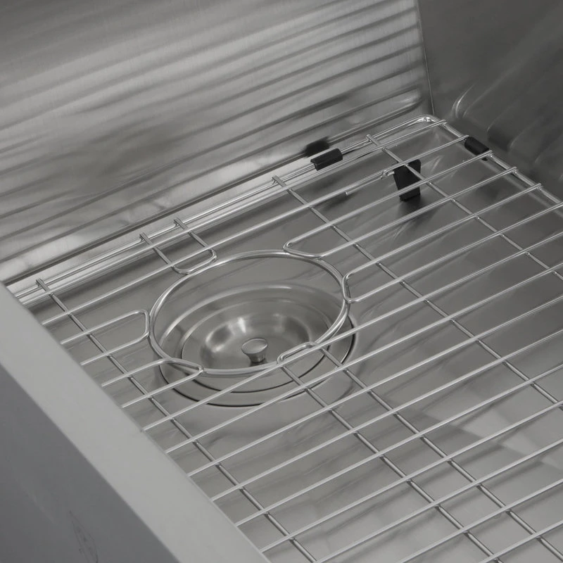 - This sink is crafted from 304 stainless steel in a lustrous satin finish.